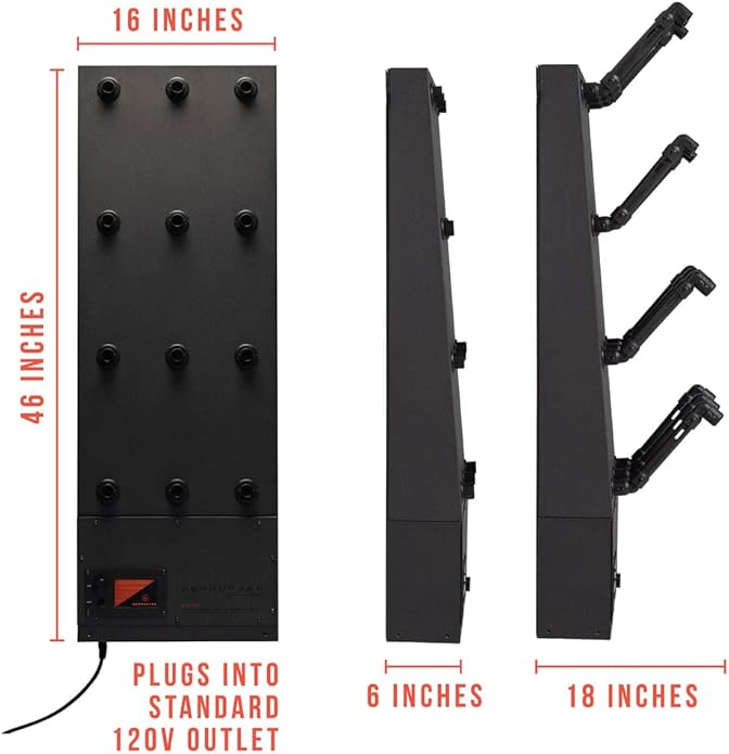 • SPECIFICATIONS Plugs into any 120-volt outlet--no professional installation needed | heavy-duty steel construction with a durable powder coat finish | 16” W x 6”D x 46”H | 46lbs