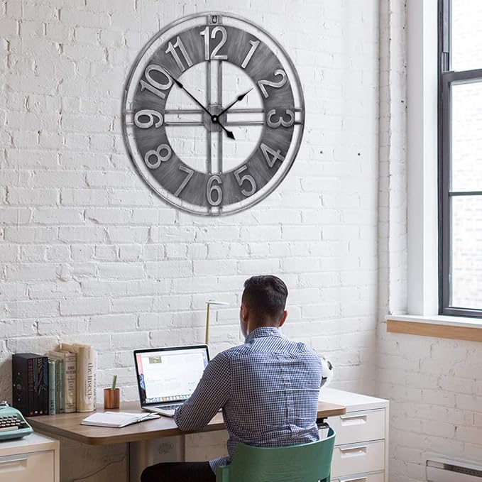 24 inch Large Wall Clock Decorative Metal Retro Oversized Clocks Decor for Home Farmhouse Living Room