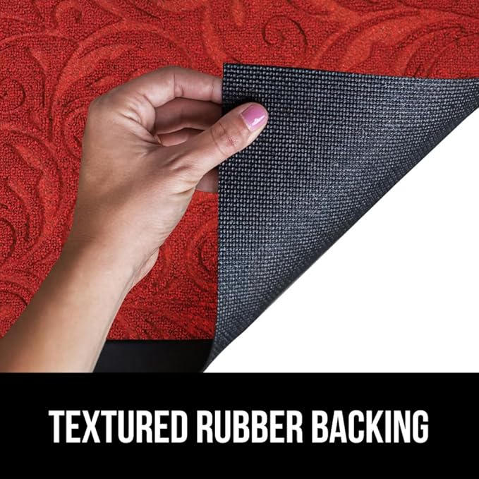 GORILLA GRIP 100% Waterproof All-Season WeatherMax Doormat US Designed Natural Rubber, Stain and Fade Resistant, Low Profile Indoor Outdoor Door Mats, Easy Clean Patio Mat, 17x29, Red Vintage Wine