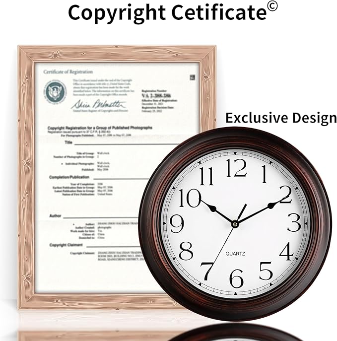 12 Inch Wall Clocks Battery Operated Silent Non-Ticking Wall Clock Vintage Retro Rustic Style Decorative for Living Room Kitchen (Bronze)