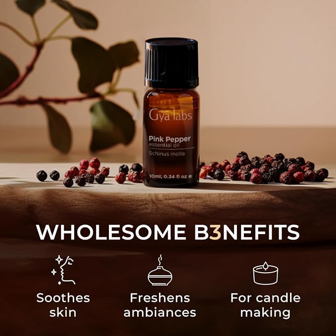 - A TRUSTED NAME IN AROMATHERAPY OILS. Gya Labs' Pink Pepper Essential Oil is made from high-quality Peruvian pepper corns