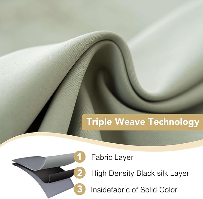 - MULTIPLE FUNCTIONS: These premium blackout curtains are made by innovative technology specially yarn. Ultra soft, super smooth and excellent silky. High performance on thermal insulated, room darkening, noise reducing, energy saving / efficiency and privacy protection
