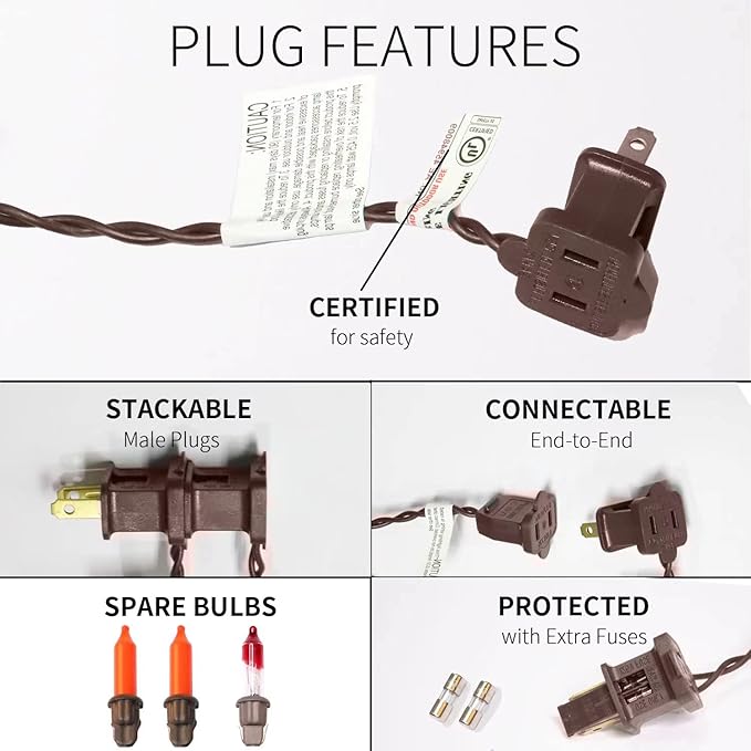 - Safty and Easily: High quality UL certified products ensure the safety of you and your family, Decorate with 100 halloween incandescent mini lights with brown wire will give a soft festive feel to your Halloween.