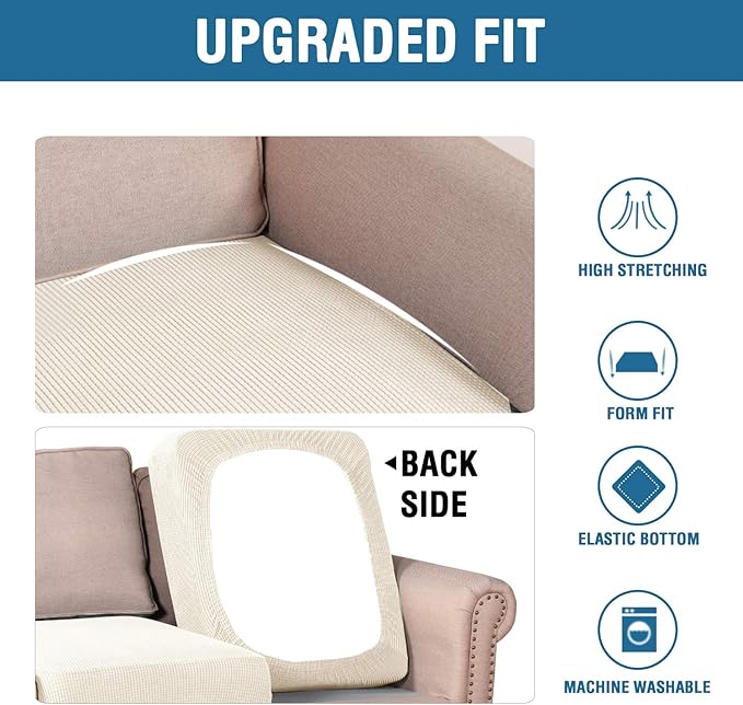 H.VERSAILTEX Super Stretch Individual Seat Sofa Covers Couch Slipcover Sets Thick Jacquard Textured Twill Fabric (3 Piece XL Sofa Cushion Covers, Natural)