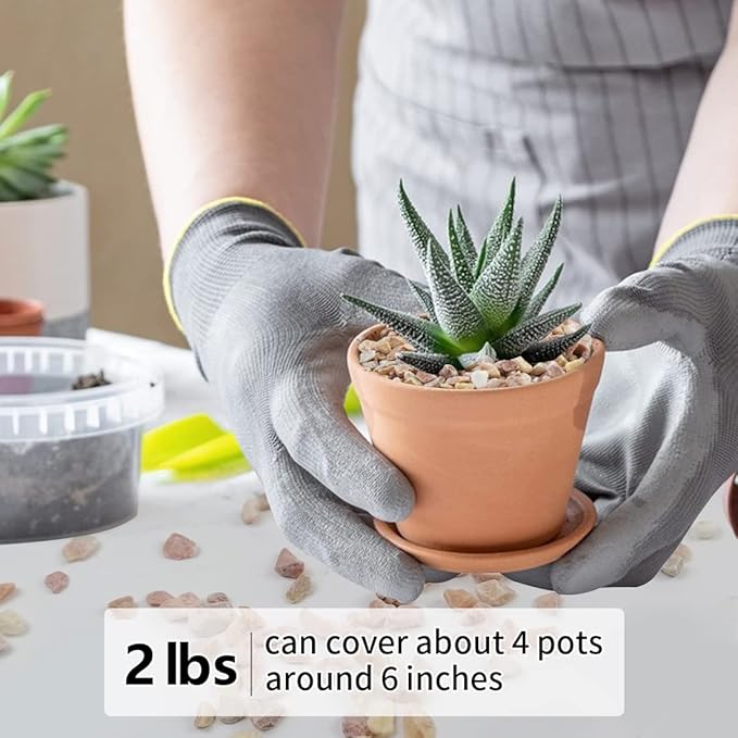 • 【Gravel Pebbles Size】These stones are packaged in a 2 pounds bag. The size is about 1/5 inch, it is perfect for succulent and cactus plants, as well as any vase or terrarium
