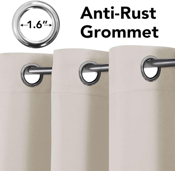 - Natural Blackout: Products passed GLOBAL RECYCLED STANDARD certificate.These magic thermal insulated grommet curtain panels can blocks out 50% sun light and prevent 100% UV ray, authoritative lab test that the curtains are vinyl and PVC free, breathable and airy to your room