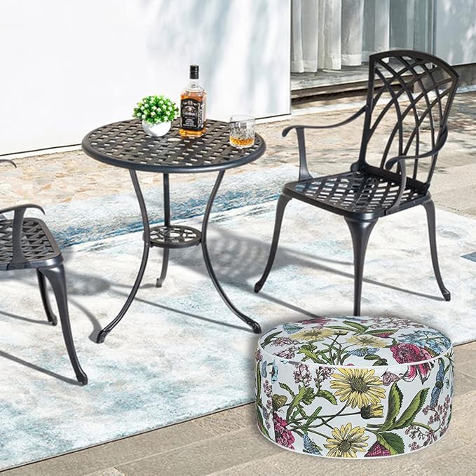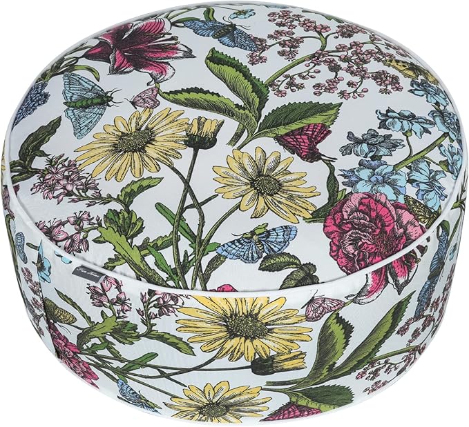 FUNHOME Inflatable Outdoor Ottoman with Air Pump,20"x9" Portable Patio Pouf,Water Resistant,Fade-Resistant,Round Blow Up Footrest Stools for Home Garden Camping Travel(Butterfly Flower)