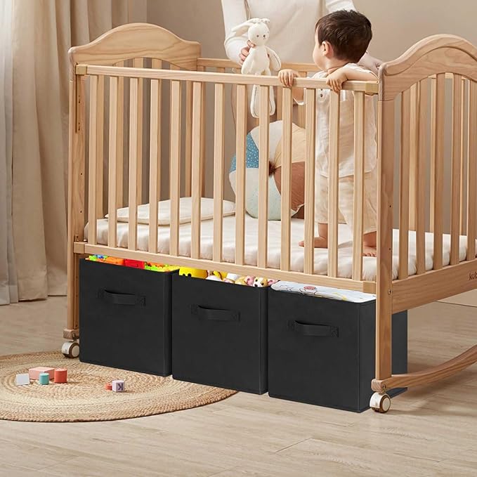 GhvyenntteS Storage Cubes 12 Pack, 11 Inch Cube Storage Bins with Dual Handles, Collapsible Heavy Duty Fabric Bins for Shelves Closet, Baskets for Organizing Clothes Bedding Toys Books (Black)
