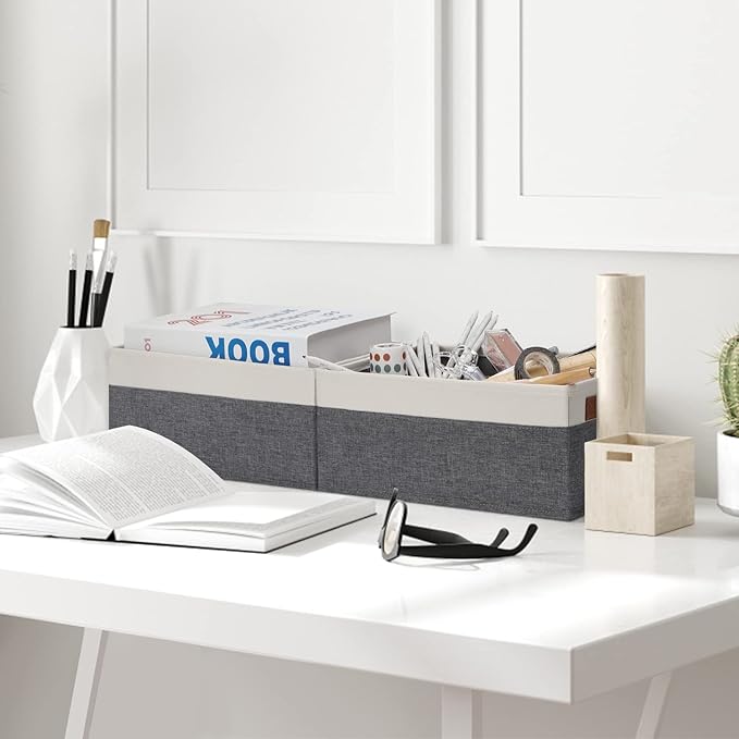 - 👍【SMALL but BEAUTIFUL SIZE】Set of 12 small storage baskets, dimensions (each): 11.8(L) x 7.87(W) x 5.11(H) inch, which can store a variety of items to organize your home or office. With their perfect size and stylish appearance, these fabric storage baskets effortlessly blend with many furniture styles and color palettes, while keeping your home organized.
