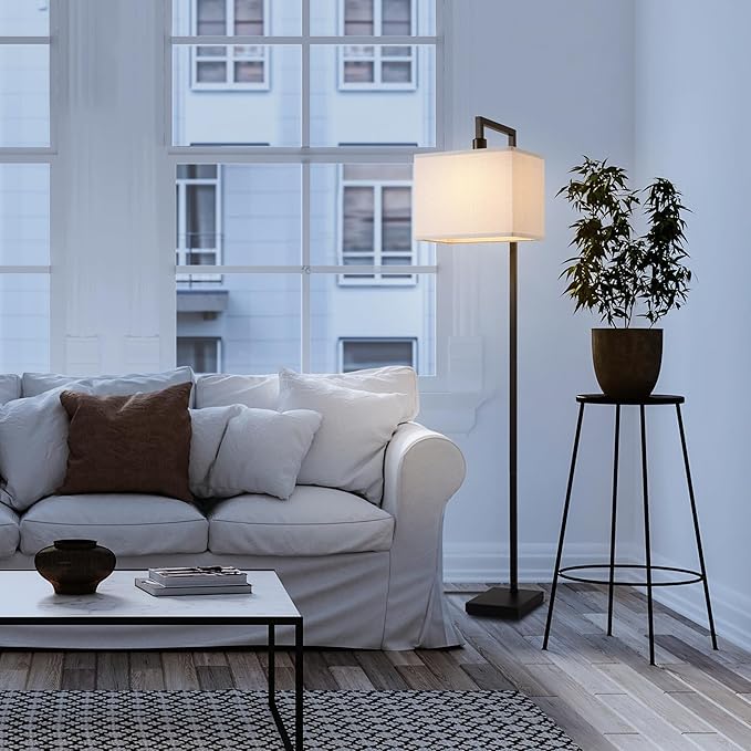 Globe Electric 61000052 60" Floor Lamp, Matte Black, Square White Fabric Shade, On/Off Rotary Switch on Socket, Square Rod, Reading Lamp, Home Office Accessories, Home Décor, Home Improvement