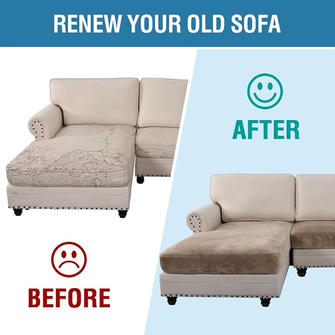 - INCREDIBLY COMFORTABLE VELVET: Products passed GLOBAL RECYCLED STANDARD certificate.This innovated stretch sofa slipcovers are constructed with 3 PIECES,including 1 Chaise cover and 2 individual cushion covers. Crafted from luxurious velvet plush fabric, feature thick, soft, smooth, anti-wrinkle, no fading, durable as well as highly stretch. Protect your cushion furniture from daily wears and tears, stains, kids, scratches from pet claws, dogs or accidental spills