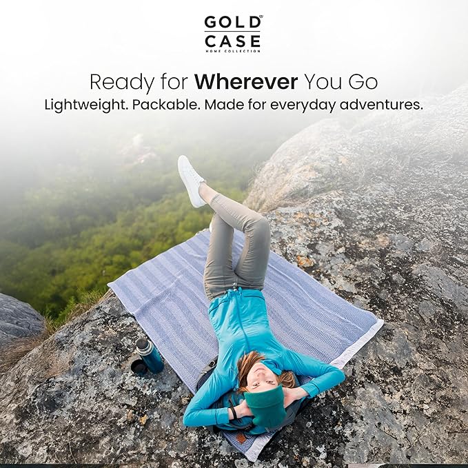 Gold Case Throw Blanket for Bed – 100% Recycled Turkish Cotton Bed Blanket – Decorative Throw Cotton Blankets for Living Room & Bedroom – Woven Twin Blankets - 71x90 - Navy Blue