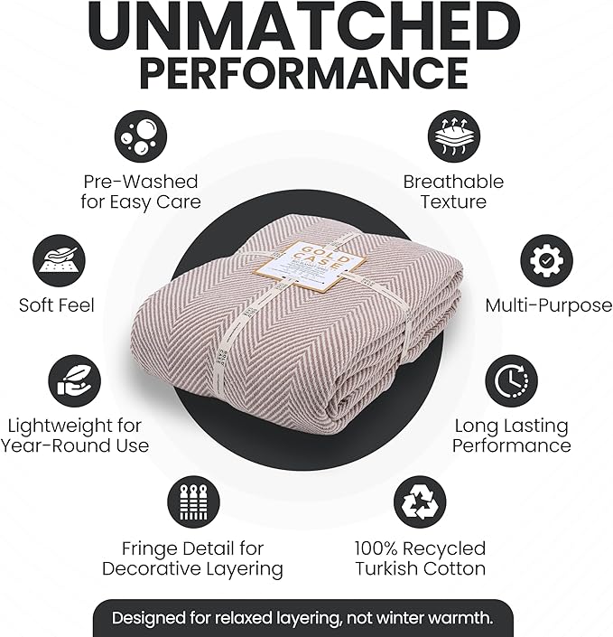 Gold Case Throw Blanket for Bed – 100% Recycled Turkish Cotton Bed Blanket – Decorative Throw Cotton Blankets for Living Room & Bedroom – Woven Twin Blankets - 71x90 - Elegant Beige