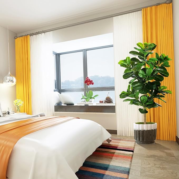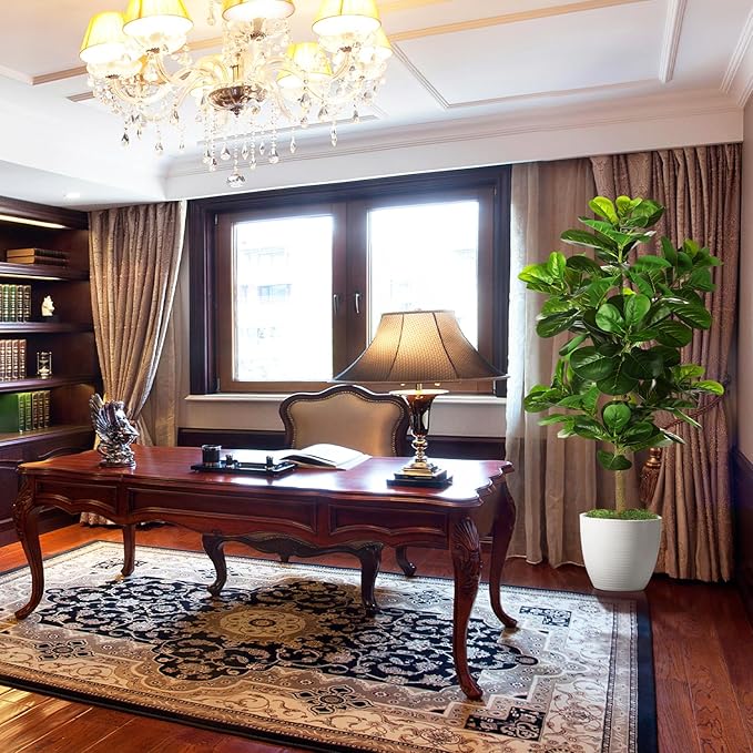 - 【BEST DECORATIONS】 Carefully crafted to mimic the appearance of a real-life Fiddle Leaf Fig Tree, looking as close to reality as possible, perfect for any room or office and outdoor decor, this fake fig tree will let you feel the presence of nature. All seasons are green. Perfect housewarming gift.