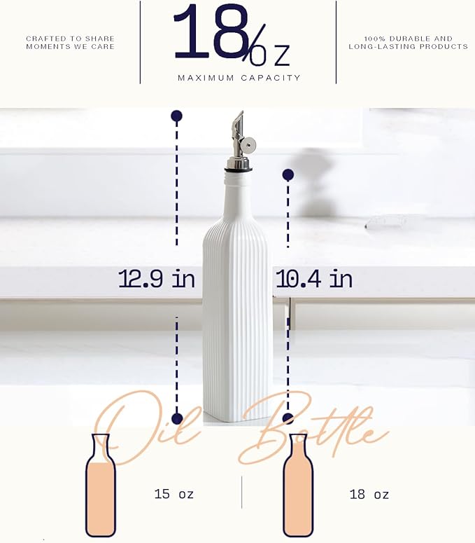 • [Elegant Design] A sleek white ceramic cooking oil dispenser with embossed stripes, creating a visually appealing and tactile experience for your kitchen or dining table