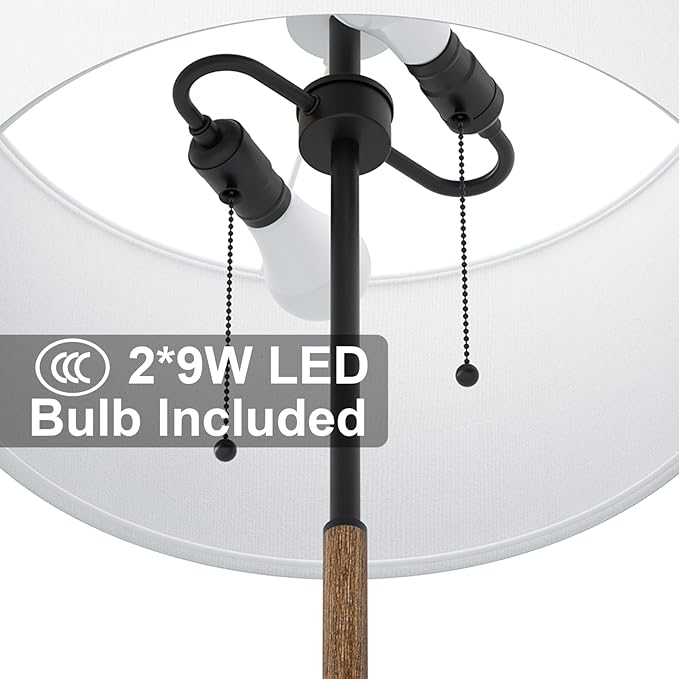 2-Light Floor Lamp, Mid Century Floor Lamp with White Fabric Shade, Standing Lamp Tall Lamp for Living Room Bedroom, 3 Color Temperatures 9W Bulb Include