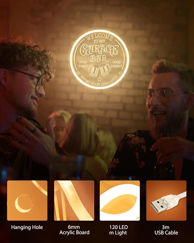 - 🍻【Garage Bar Neon Sign】Embrace the fun and relaxation with the garage bar neon sign! This vibrant neon light is the perfect addition to any camping or gathering, bringing a touch of fun and camaraderie to your bar party.