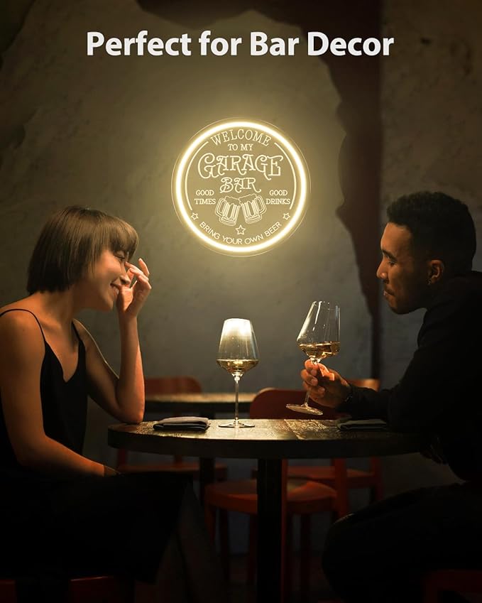 - 🍾【Perfect Wall Decor】Use this bar neon sign in your garage bar to create a unique atmosphere and make a wonderful addition. It's a really nice mood light and it definitely adds flavor to an otherwise plain space. This led sign can also be used to decorate many scenes, such as garage, back yard, patio, poolside, bedroom, home pub, game room, man cave, BBQ party and so on.