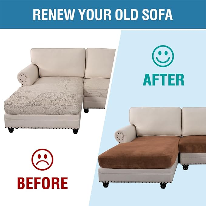 - UPGRADED THICKER: Each individual cushion cover fits up to 19.6-29 inch width, 21.6-30.5 inch depth, 3-8 inch thickness while the chaise cover fits up to 32-38 inch width, 54-62 inch depth, 3-8 inch thickness. Feature one-size-fits-most, kindly measure before ordering