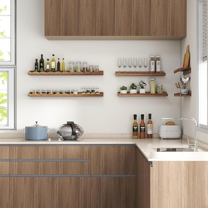 - 【Solid Pine Wood Shelves】Crafted from sturdy pine wood, our floating shelves offer a more environmentally-friendly option. Each board preserves its natural grain and color, ensuring a unique look for every shelf. Not only do these shelves provide practical storage solutions, but they also enhance the overall appearance of your room, adding a touch of elegance to any space.
