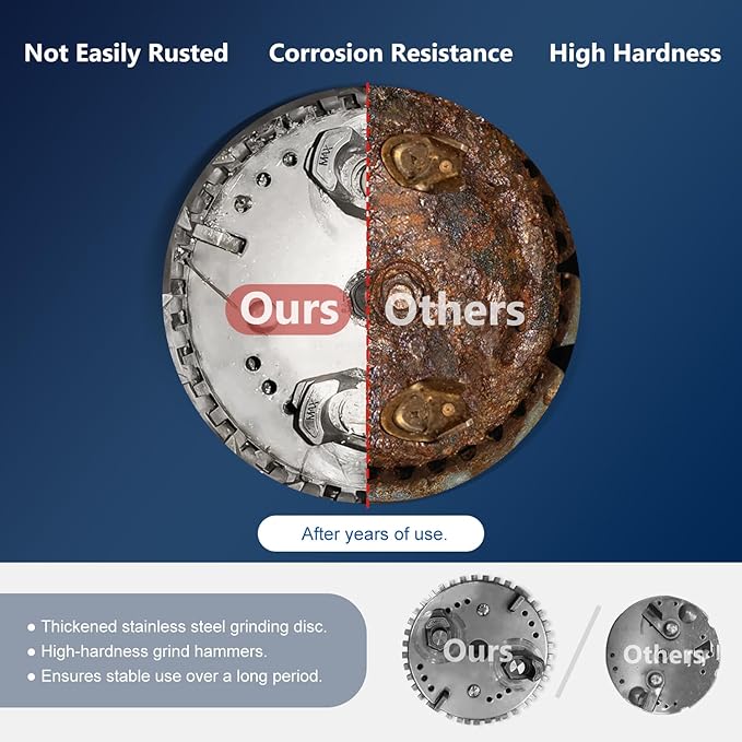• Rust-Resistant & Durable:Stainless steel grinding chamber won’t rust, unlike cheaper galvanized steel models. Leak-proof ABS housing ensures long-lasting use. 34 oz (1000 mL) capacity—ideal for households.