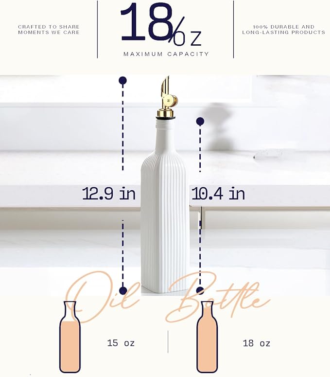 • [Ridged Texture for Grip] The ridged texture of olive oil bottles for kitchen not only adds a stylish touch but also provides a secure grip, making it easy to handle and preventing accidental slips during use