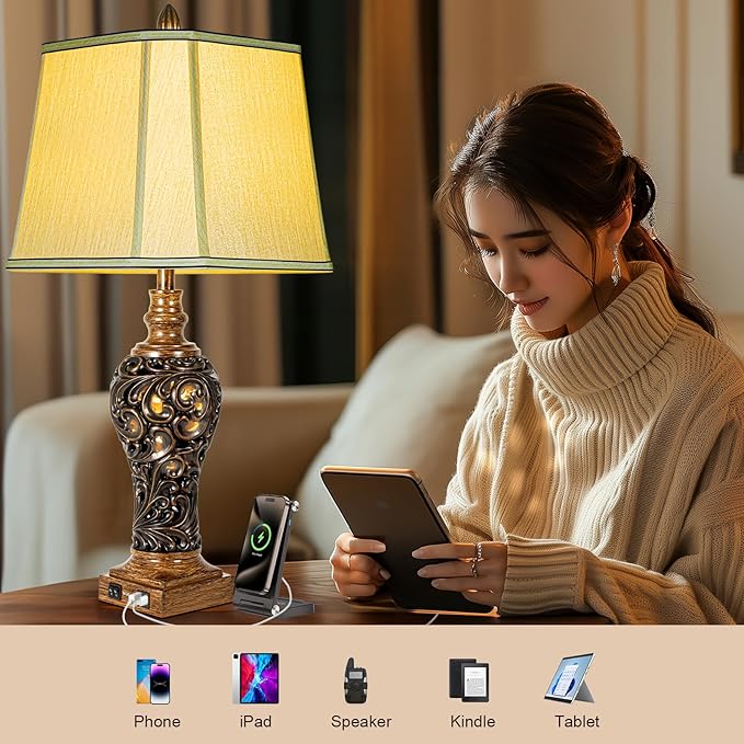 - Eye-Caring Farmhouse Table Lamps: The faux silk lamp shade and the nightlight make the glow softer and protect your eyes. Suitable for reading or working. These lamps make the perfect gift for your family and friends!