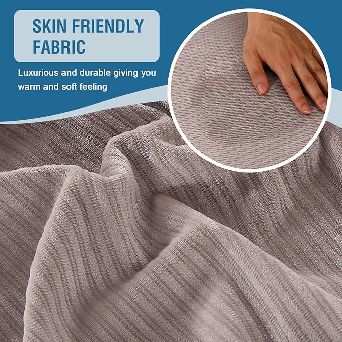 H.VERSAILTEX Velvet Stretch Sectional Couch Covers 4 Pieces Sofa Seat Cushion Covers L Shape Separate Cushion Couch Cover for Both Left/Right Couch (Large Sofa 3 Seater + 1 Chaise, Taupe Striped)