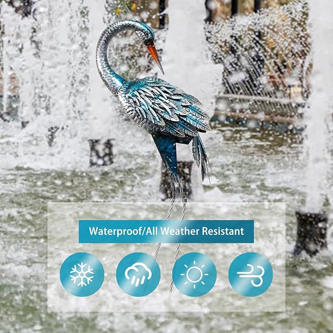 • Stable Garden Decor: The feet of the crane sculpture are U-shaped design and the package including 2 U-shaped stakes, U-shaped stakes can sink deeper in the ground for better securing