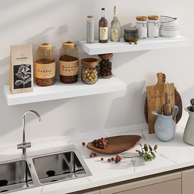 Fun Memories White Floating Shelves 36 Inch Long, 8 Inch Deep Floating Shelf for Wall, 36" W x 8" D Floating Shelves Set of 2, White Deep Wall Shelves for Bedroom, Living Room, Kitchen