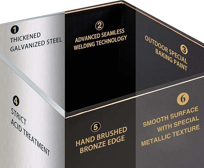 - 【No Assemble and Seamless】Our flower box arrives fully assembled and requires no additional setup. Simply unpack and place it in your desired location for instant use, saving you time and effort. Crafted using advanced fully automatic welding technology, this flower box features a seamless, one-piece design with a smooth and even surface, ensuring long-lasting durability and a polished appearance.