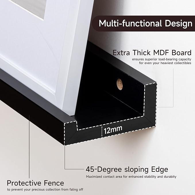- 3.5" PICTURE LEDGE DESIGN: Ideal for displaying photos, artwork, or collectibles, these feature a thoughtful extremely narrow 3.5-inch width ledge design to prevent items from sliding forward, its mounting holes are spaced 16 inches apart for secure mounting to wall studs uncluttered aesthetic