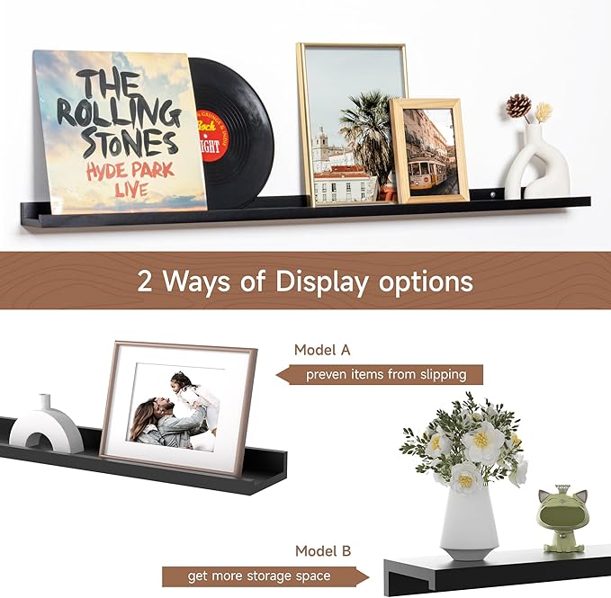 - MEMORIES SHOWCASE SHELF: Do you have a lot of memorable photos, but don't know how to display them, Fun Memories picture ledge shelves (especially in large sizes) are perfect for you to display them! With our hanging racks, you can store and display different types and sizes of photo frames in one place without worrying about