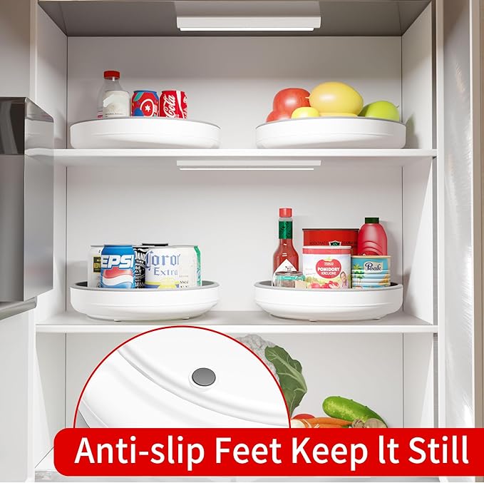 - Multifunctional Turntable Organizer - Perfect spinning lazy susan organizer for kitchen, pantry storage, dining room, bathroom countertop, table, under the sink, refrigerator, cabinet closet,etc. You can organize such as spice jars, oil bottles, drinks, toiletries, cosmetics, etc