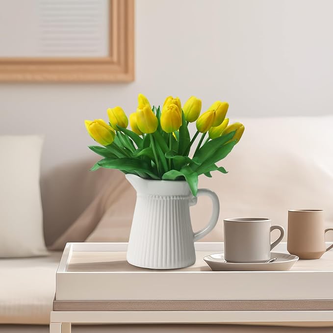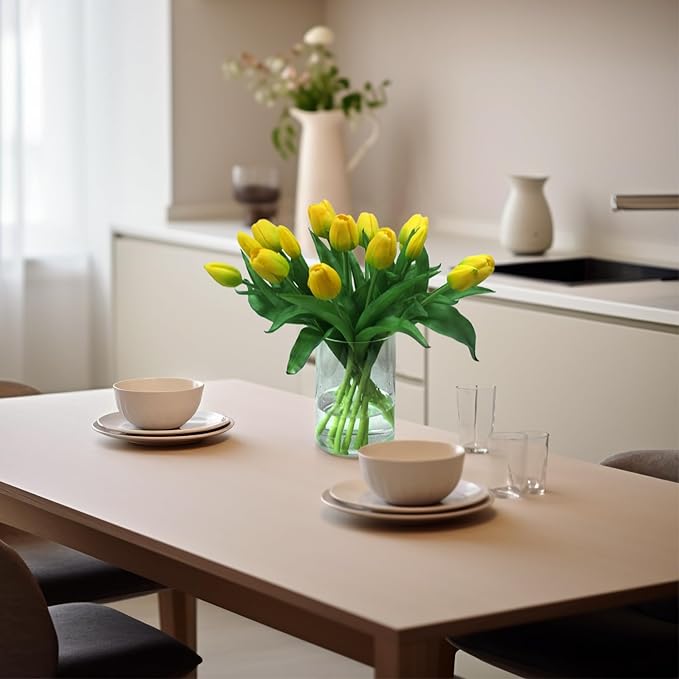 - [Real Touch]: Our latex tulips closely mimic the texture of real flowers, and the buds resemble the natural growth state of the plant. With bright, shiny colors, real touch flowers provide a unique sensory experience, uplifting your mood when placed in your home.