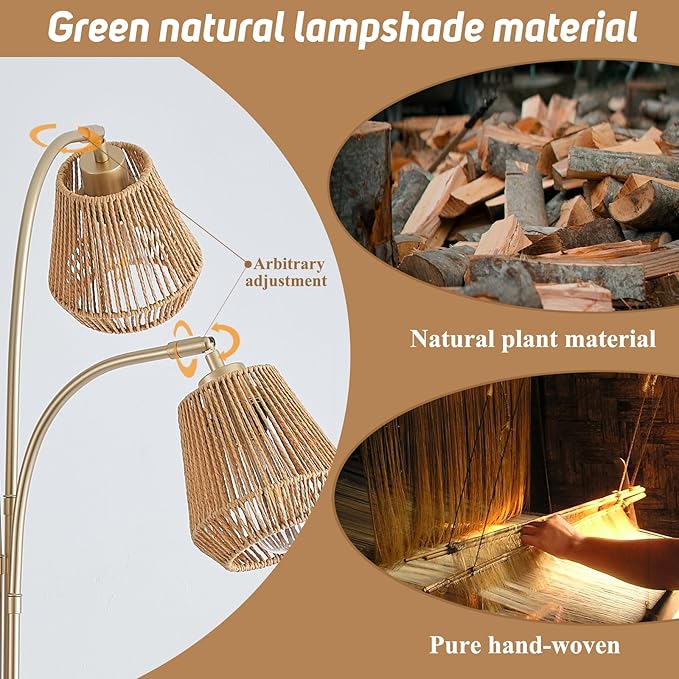 - 【Flexible Design】Our boho floor lamps for living room are designed to cater to any space with their 3 lamp floor lamp rattan structure. The adjustable arms provide focused lighting for a cozy reading corner or broad illumination for social gatherings. This coastal floor lamps for living room adapts to the multifunctionality of your home with refinement and ease