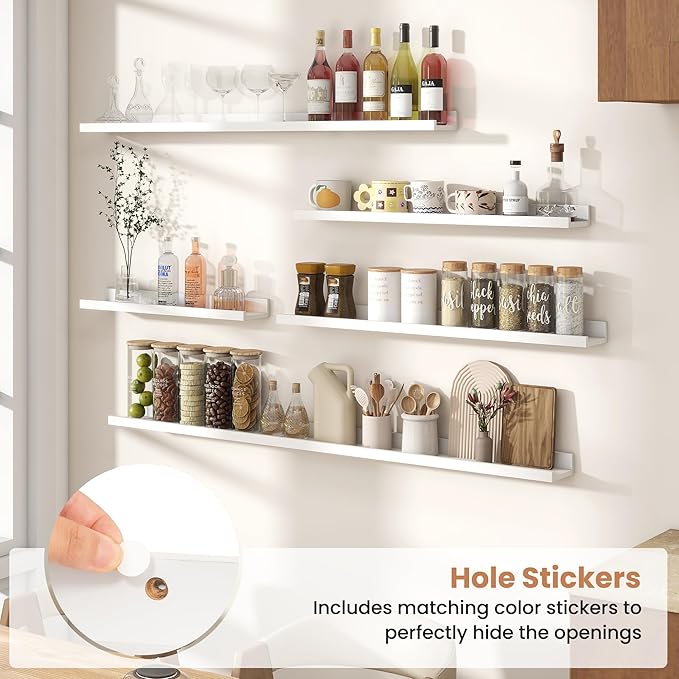 - Enhanced Stability Design: Featuring a secure lip at the front, these floating shelves prevent items from slipping or falling, confidently supporting up to 45 lbs, making these MDF wood shelves ideal for showcasing cherished items.
