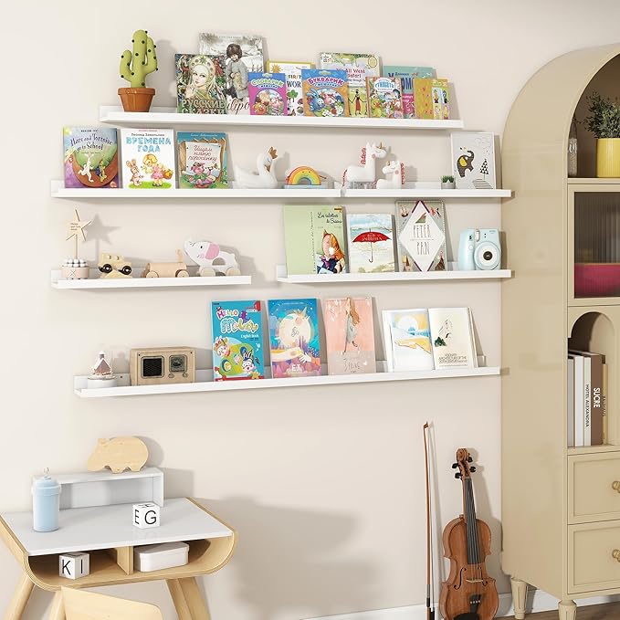 - Maximized Storage Space & Rich Color Selection: Our U-shaped floating shelves provide ample room for displaying picture frames, books, plants, and decorative items while enhancing your home decor. Available in five sizes and four trendy colors. The 3.5 inch width makes it especially suitable for use as a picture ledge shelf.