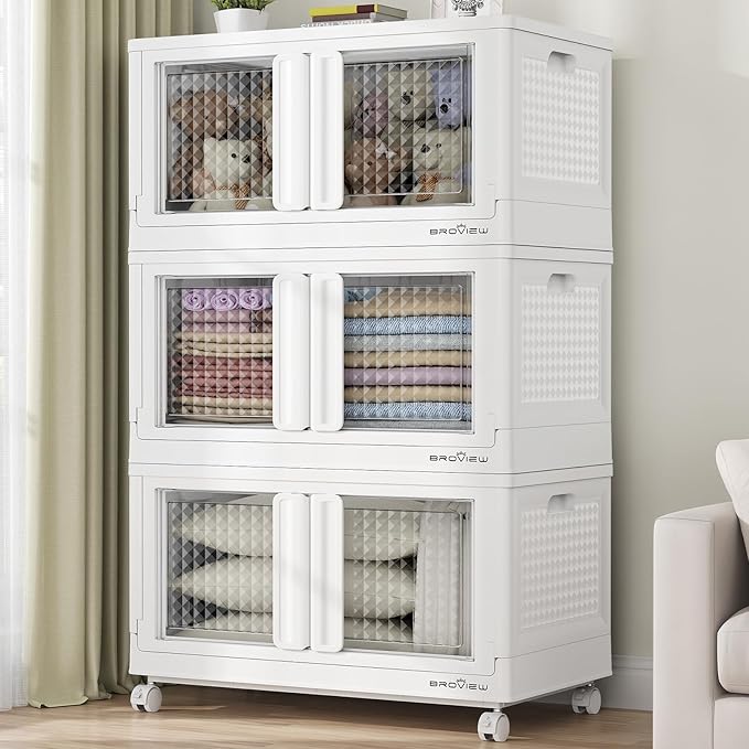 - 【Space-Saving Stackable & Collapsible】Maximize your storage footprint. Stack bins vertically as modular cabinets (bedside, clothing, books, kitchen) and collapse them nearly flat when not in use. Perfect for closets, laundry rooms, garages, playrooms, classrooms, dorms, and car trunks – featuring a roomy, odorless design.