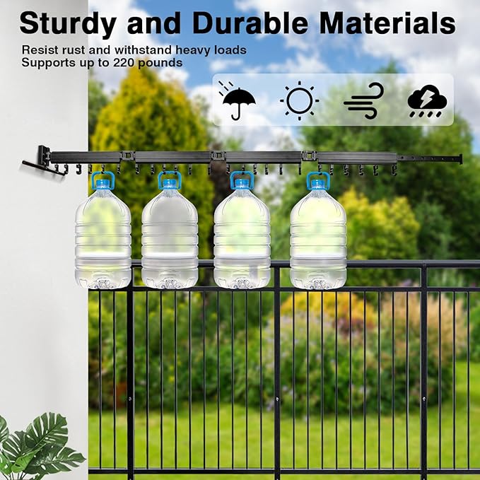 - Upgrade Features for Versatility: This wall mounted clothes drying rack has upgraded elements that make it highly versatile. There are 24 units 360° rotating wind-resistant hooks now with a dual-directional J-shape and circular design, equipped with a retractable bar with holes and an extra storage hanger rod. This clothes rack also has a thickened base, the maximum load is 220 pounds to hang so many items. All these thoughtful upgrades offer greater functionality, making it a practical choice for all your laundry needs.