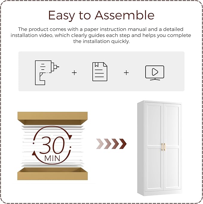 - 【Secure and Stable Design】 For added safety, the white pantry cabinets with doors and shelves includes an anti-tipping device and a wall anchor kit to prevent accidents. This secure design ensures stability, whether used in busy home environments or offices