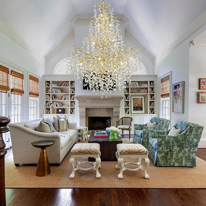 - Special Design: This high ceiling chandeliers draws inspiration from nature, with its overall shape resembling lush tree branches. The unique design and luxurious TOP K9 crystal material of this brass staircase chandeliers make it a beautiful focal point in home decor.