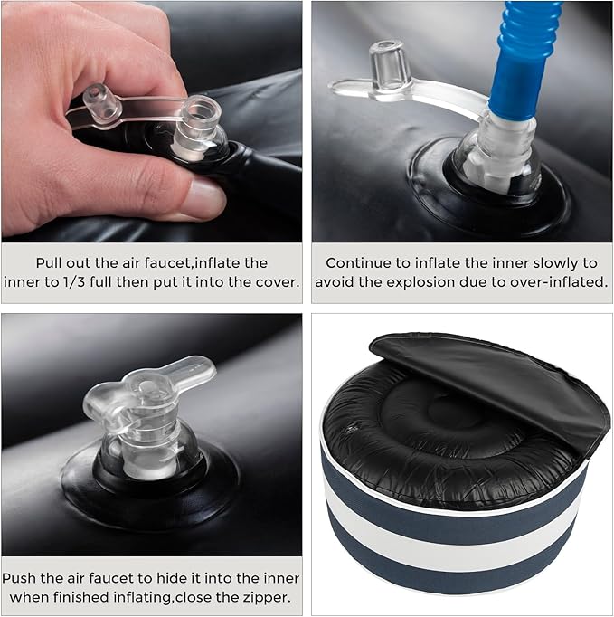- 【Widely Used】-Inflatable ottoman can be a great addition to a living room or family room, where it can serve as extra seating or a footrest. Also a great option for outdoor spaces like patio, garden or pool areas, where they can provide extra seating or a place to rest your feet.