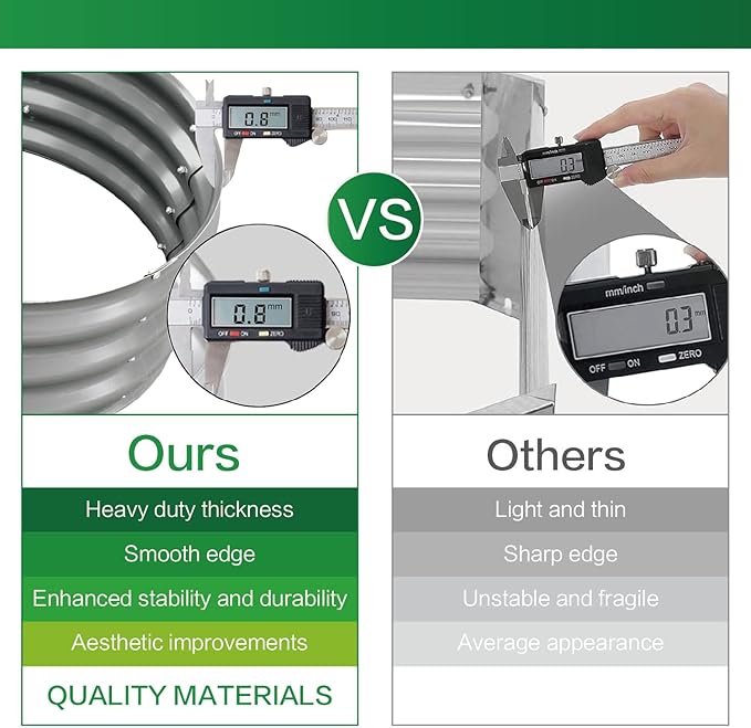 - DURABLE GALVANIZED MATERIAL: GARDMAX outdoor raised garden beds are made from 0.8mm heavy-duty galvanized material, ensuring exceptional longevity and durability. It is more resistant to high temperatures and freezes, making it very suitable for outdoor use. And this metal will survive the elements for decades, but when you're ready to replace it, the metal is entirely recyclable (Moreover, the middle support strip provided exceptional strength to our lightweight Galvanized Raised Garden Bed)
