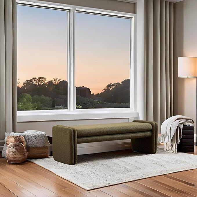 Green Boucle Bench 50" Sherpa End of Bed Bench Modern Upholstered Bench for Bedroom Entryway Living Room Vanity Makeup Room, Teddy Fabric Bench with Seating
