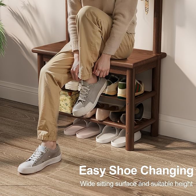 - [3-in-1 Coat Rack] Our hall tree combines three functions in one: hooks for coats and bags, a shoe bench for changing shoes, and a shoe rack to organize your footwear—this freestanding coat rack brings you a tidy, convenient, and cozy entryway at home
