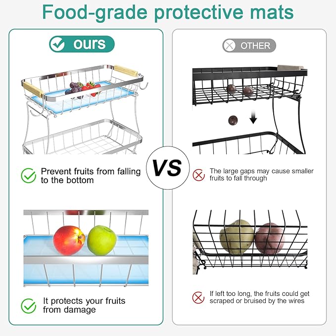 • Bonus mats prevent fruit from falling and protect against metal pressure marks.