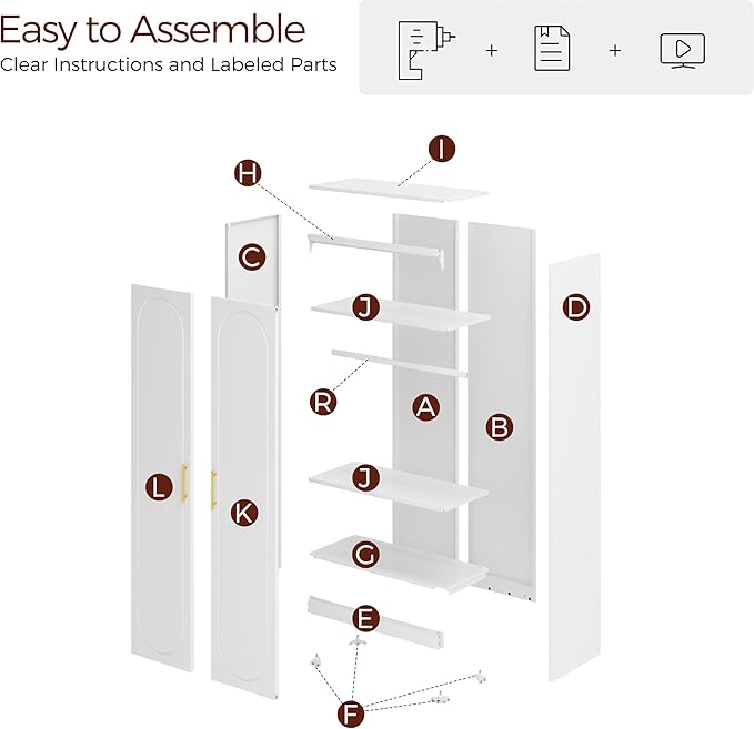 - Easy Installation: Our wardrobe armoire comes with clear and complete parts and detailed installation instructions. One person can also assemble it quickly. Upgrade your bedroom storage with a high wardrobe!