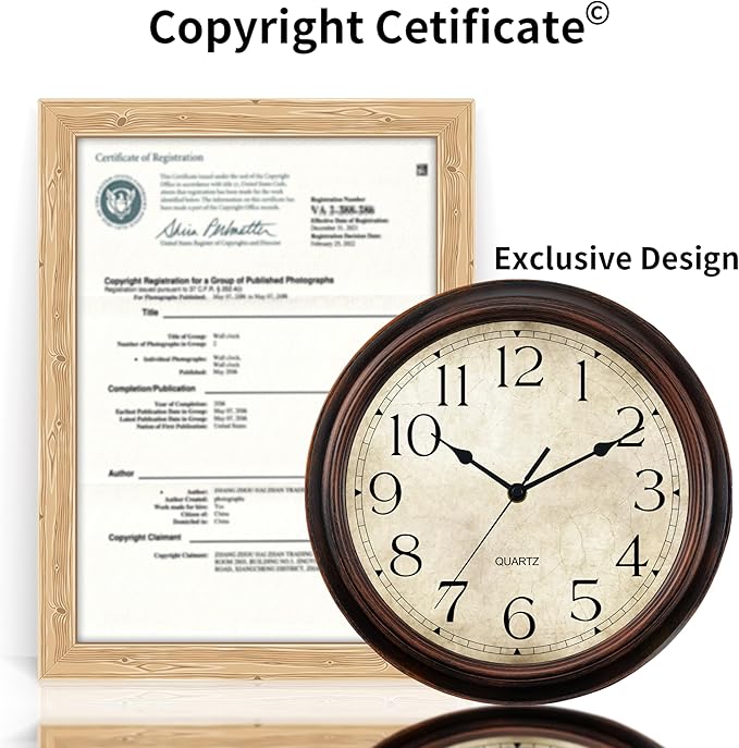 12 Inch Wall Clocks Battery Operated Silent Non-Ticking Analog Wall Clock Vintage Retro Rustic Style Decorative for Living Room Kitchen Home Office(Bronze)