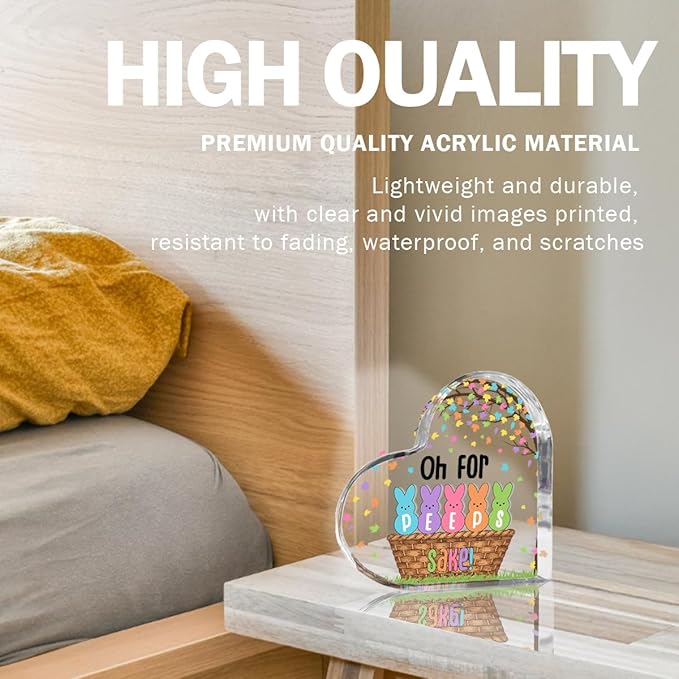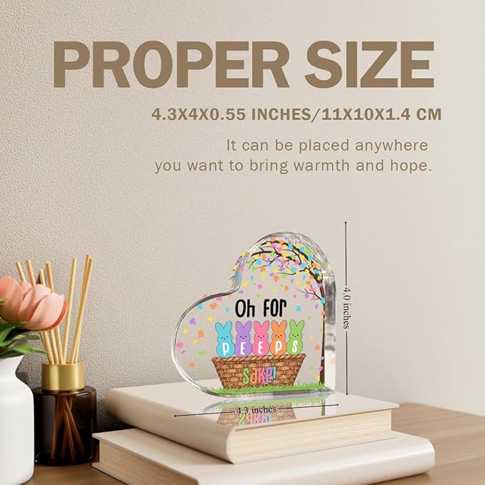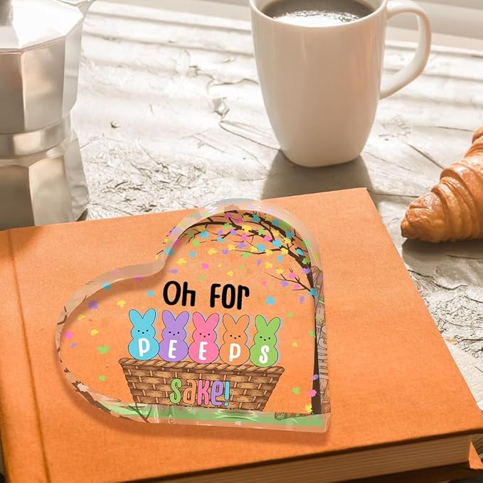 Funny Easter Bunny Decor Desk Decor Acrylic Heart Sign Easter Decorations Easter Gift Acrylic Heart Plaque Box Sign for Home Farmhouse Kitchen Bathroom Shelf Table Decoration Oh for Peeps Shake Sign